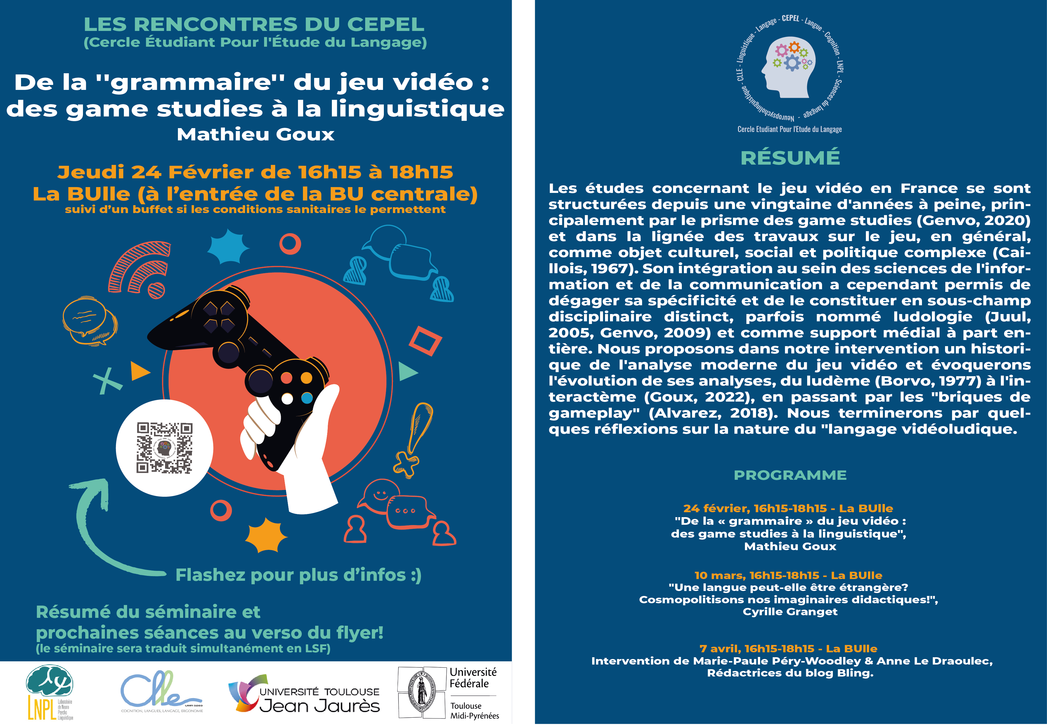 [CEPEL] De la "grammaire" du jeu vidéo : des games studies à la linguisitque, Mathieu Goux